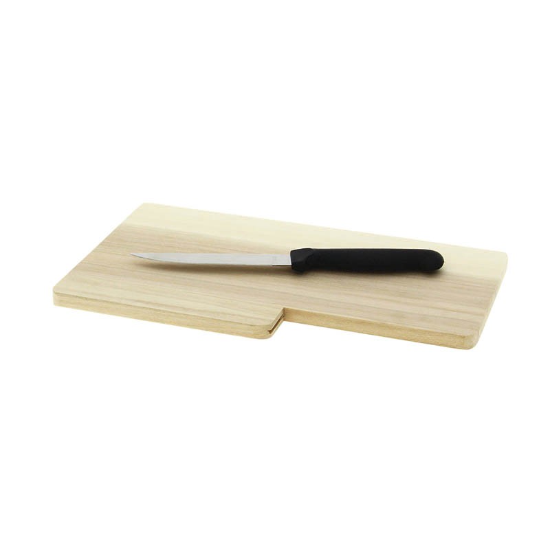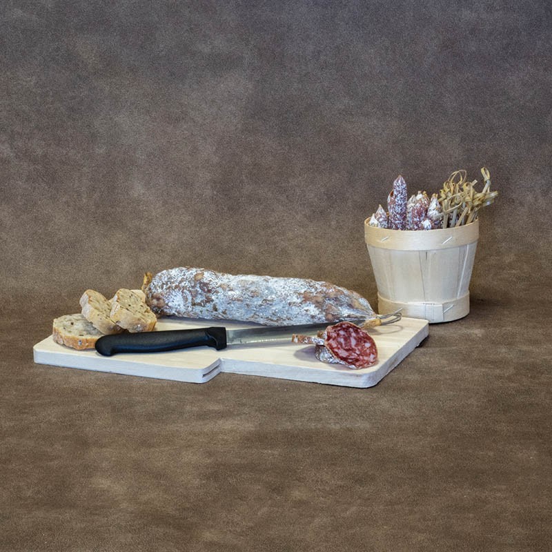 Planche à découper 28x17x1,2 cm en bois de peuplier certifié contact alimentaire et son couteau pour la présentation et le service de vos produits de salaisonDestinataire :