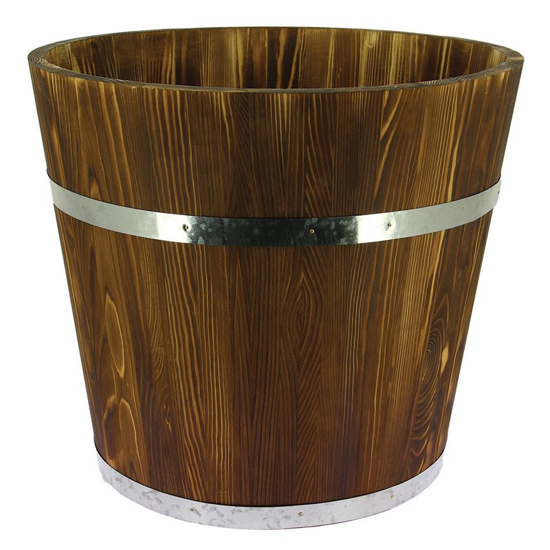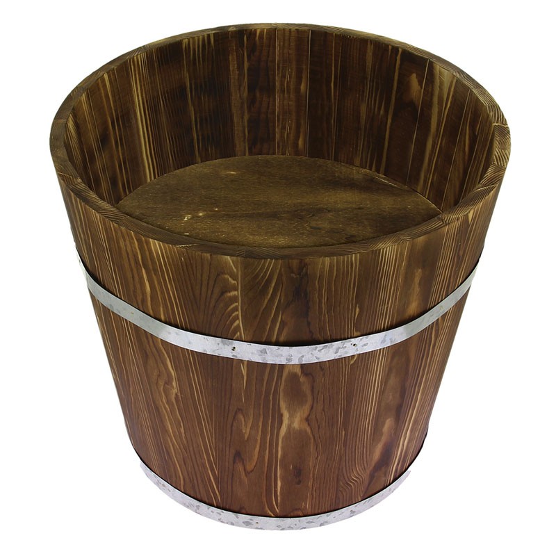 Vasque en Pin naturel verni avec double cerclage métal, conçue pour la...