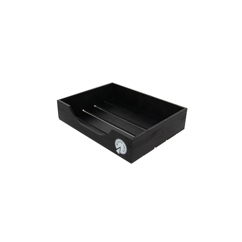 Cagette en bois noire avec ouverture frontale. Élégante et pratique, idéale pour la présentation de produits dans les grandes ou moyennes surfaces.Destinataire :