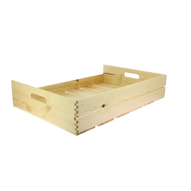 Ces cagettes ont été spécialement conçues pour les primeurs. Elles allient la robustesse naturelle du pin à une finition vernie qui garantit une longue durée de vie et un entretien facilité. La couleur claire et chaleureuse du bois sublime instantanément les couleurs vives de vos produits.