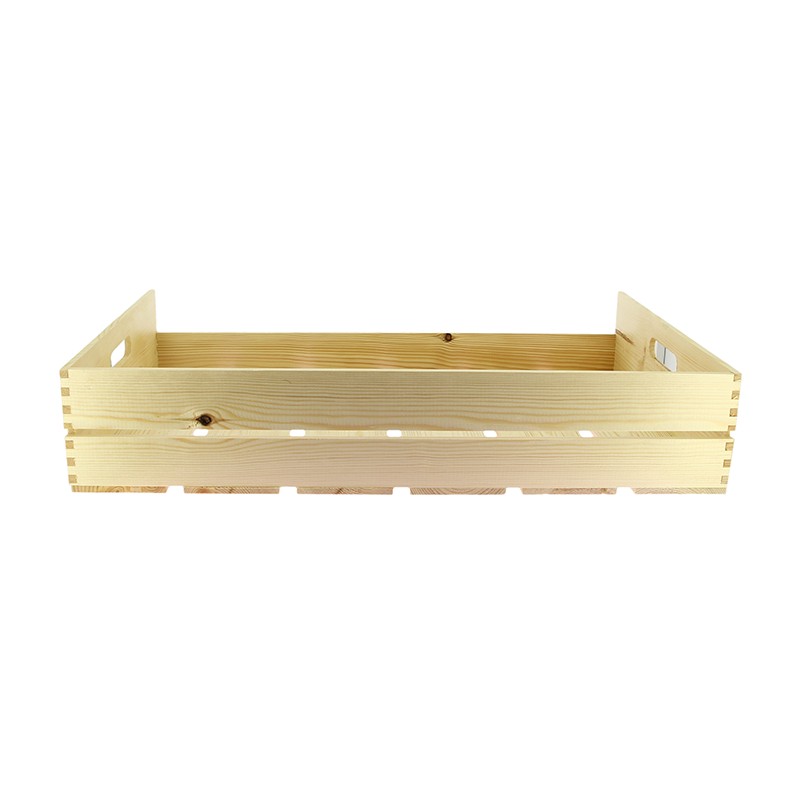 Cagette grand format en Pin verni avec façade avant ouverte, pour une présentation visible et un self-service. Équipée d'anses passe-doigt, elle est conçue pour la présentation de volumes importants. Certifiée contact alimentaire, indispensable pour les étals de fruits et légumes.Destinataire :