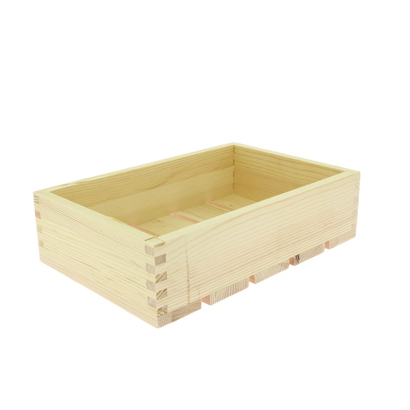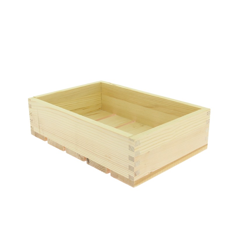Cagette en pin Naturel de dimensions 30X20X8 cm. La cagette est assemblée en tenon mortaise et certifiée contact alimentaire.Destinataire :