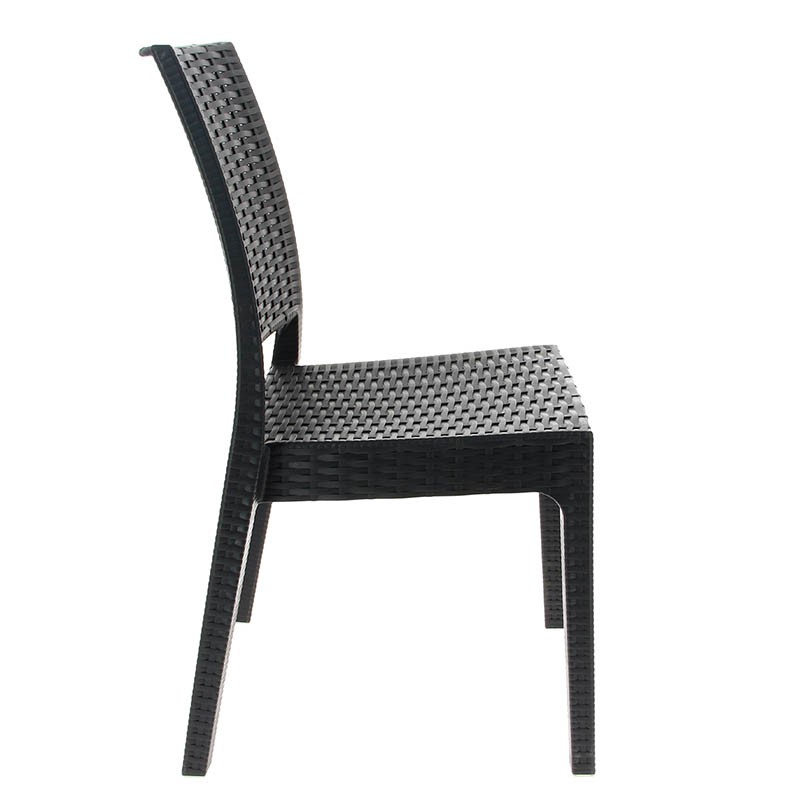 Chaise terrasse de restaurant tressé Florida. Structure moulé et immitation tressage en résine renforcé de fibre de verre de couleur grise. Dimensions 87x46x44 cm, 3.85 kg.Destinataire :