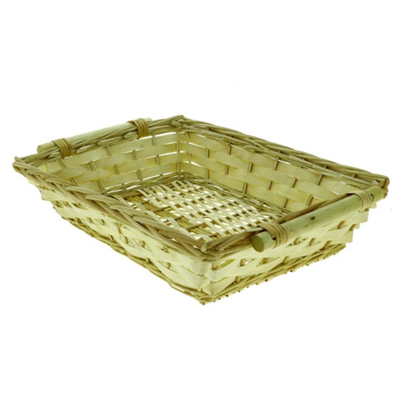 Corbeille bois déroulé et éclisse d'osier rectangle Campi petit modèle, 50x35x11 cm. Couleur bois et osier naturel. 2 poignées bois fixes sur les côtés. Certifiée contact alimentaire. Charge max : 6 kg.Destinataire :