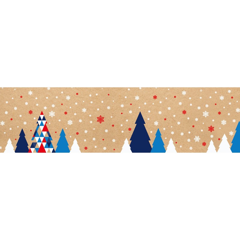 Corbeille rectangle en carton oulanka idéal pour la confection de colis cadeau pour les fetes de fin d'année. Décor Noel avec sapin et flocon de neige et interieur rouge. Exemple de capacité de contenance : 2 bouteilles 75cl + 3 terrines 90gr + 1 parfait 180gr Carton certifié FSC.