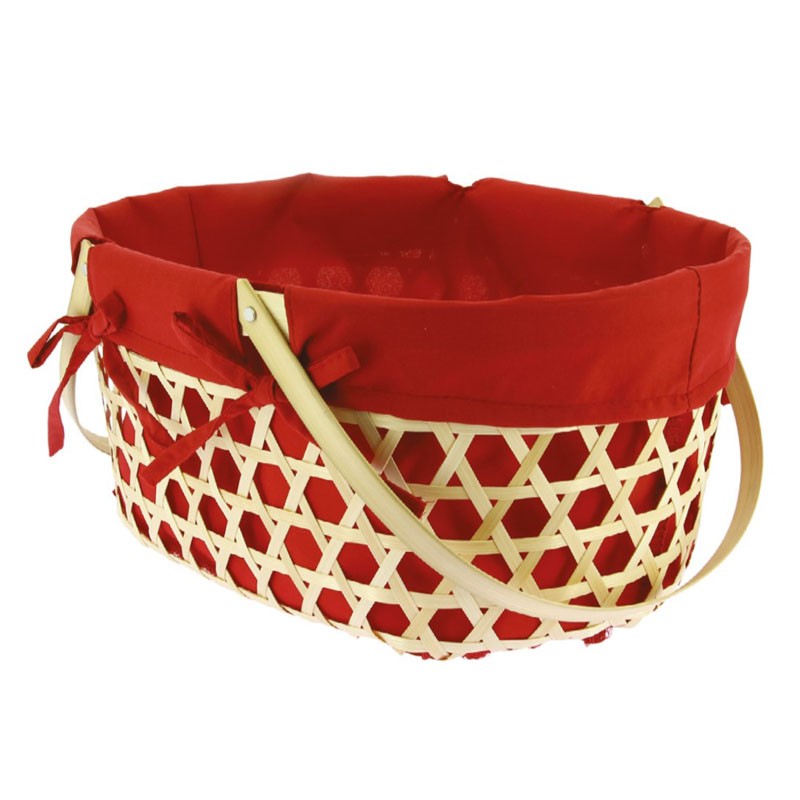 Cette jolie corbeille en bambou ajouré avec anses et tissu rouge est parfaite pour offrir un cadeau de produits regionnaux. Son design naturel et sa couleur vive en font un emballage original pour toutes les occasions.Destinataire :