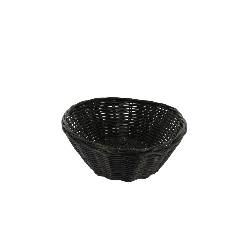 Corbeille Plastic noir, ovale en tressage plastique imitation osier. Certifiée contact alimentaire. Dimensions : 24.5x18x6.5 cmDestinataire :
