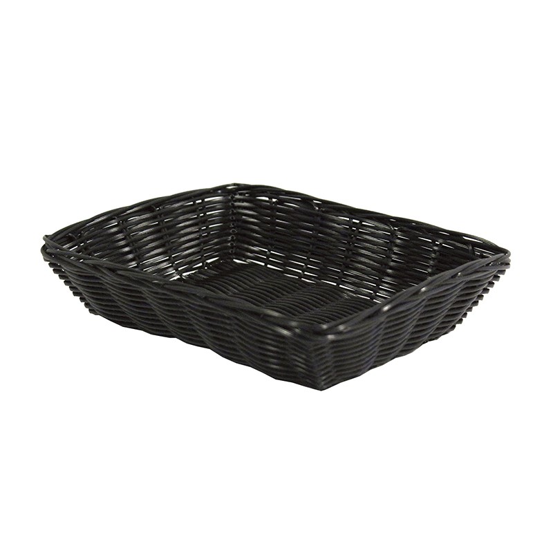 Corbeille rectangle empilable en plastique tressé imitation osier 33x22x8 cm, coloris noircertifiée contact alimentaire pour la présentation de vos produits et la composition de paniers garnisDestinataire :