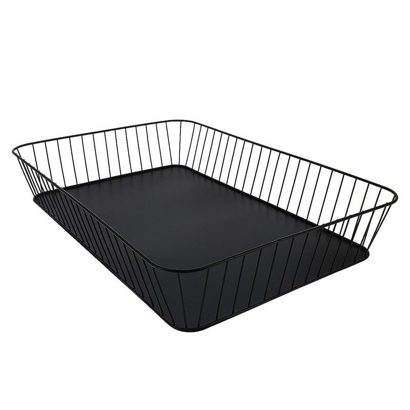 Corbeille ajourée en métal noir gamme Steely. Dimensions 60x40x10 cm. Ce modèle comme toute la gamme Steely est certifié contact alimentaire.Destinataire :