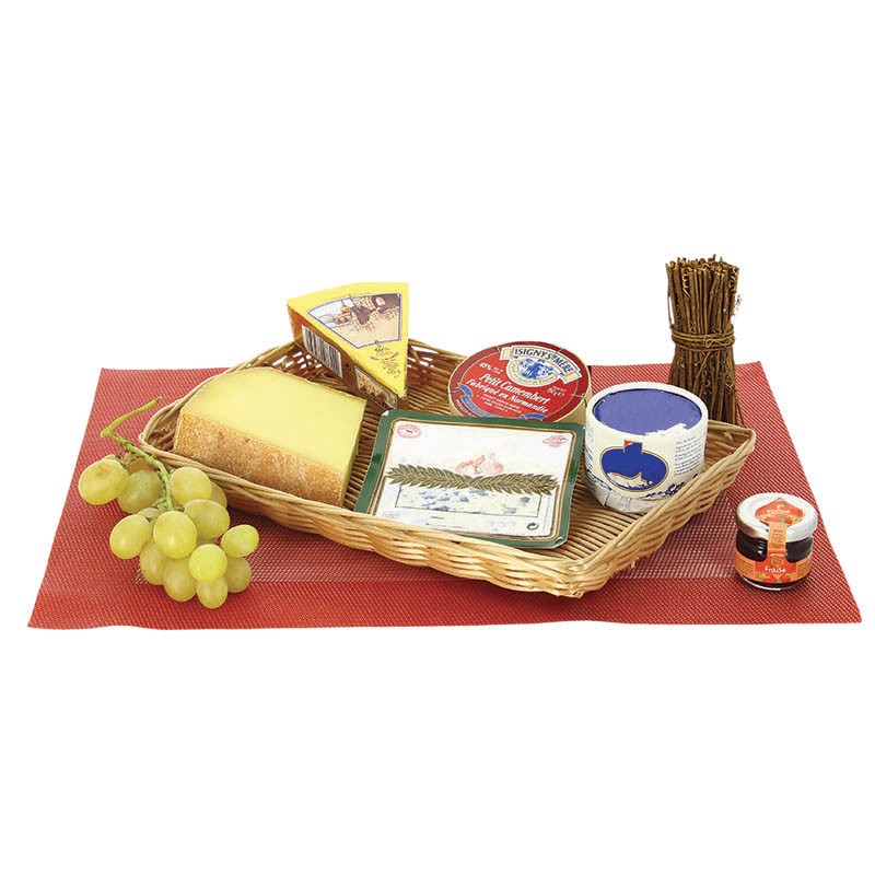 Plateau tressé rectangulaire 32x22x3 cm en plastique coloris miel certifié contact alimentaire pour la présentation de vos produits (charcuteries, fromages, fruits)Destinataire :