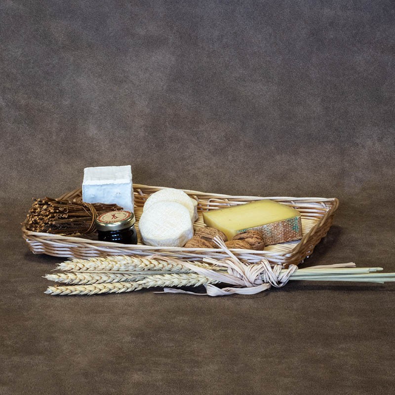 Plateau tressé rectangle 47x30x3 cm en éclisse d'osier et bois certifié contact alimentaire pour la présentation de vos produits (charcuteries, fromages, fruits)