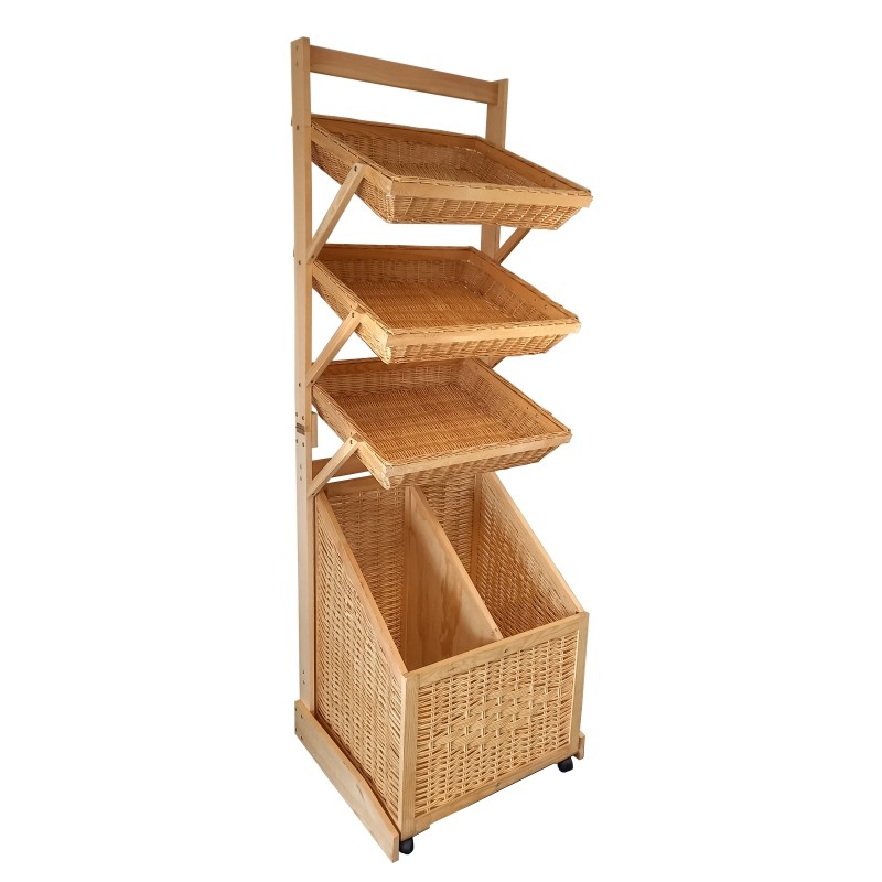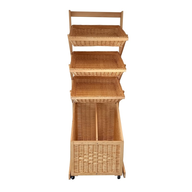 Présentoir en osier pour présentation fruits et légumes. Dimensions 95x61x165cm.
