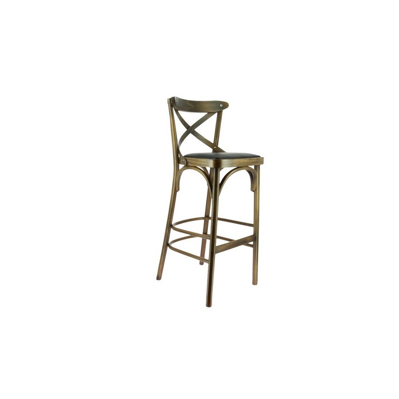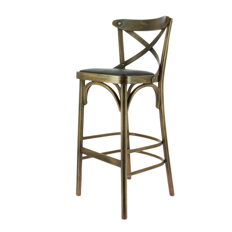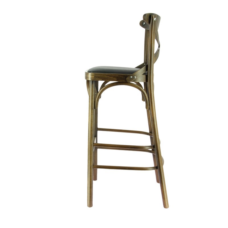 Chaise haute bar en hêtre peint polyuréthane. Revêtement simili cuir grainé....