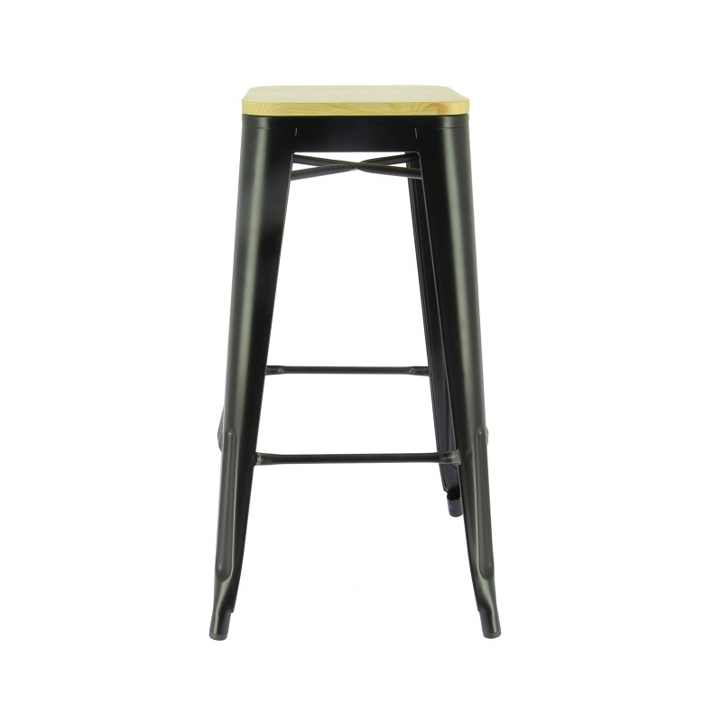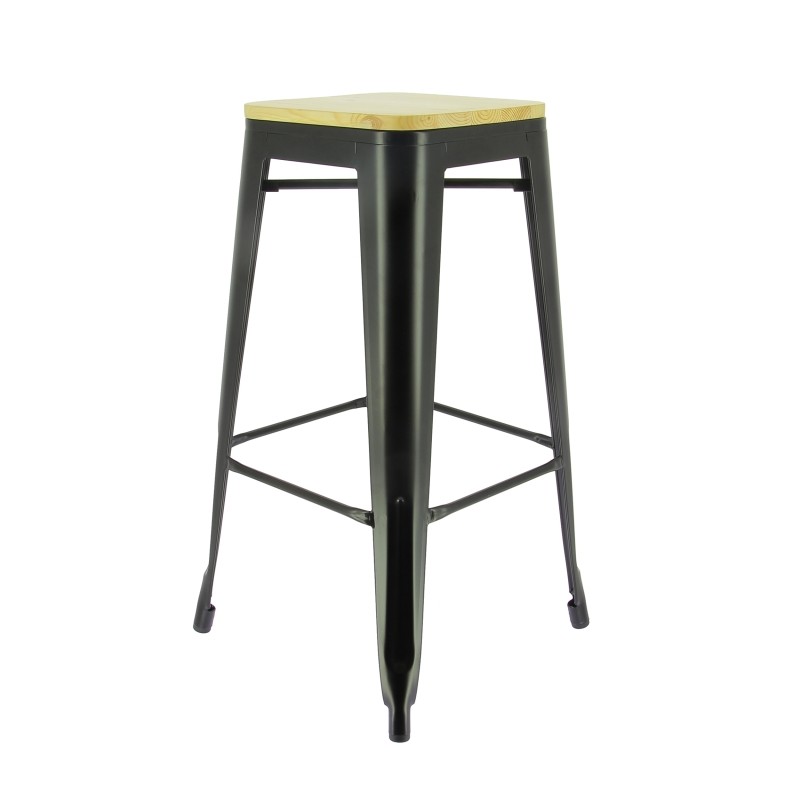 Tabouret haut minimaliste en métal noir avec une assise carrée en bois. Parfait pour les tables hautes et les îlots, il est à la fois compact, robuste et s'adapte à tous les espaces professionnels.Destinataire :