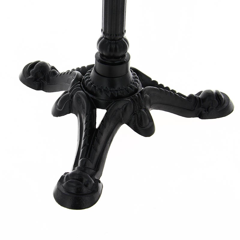 Pied de table en fonte mange-debout gamme Bistrot de couleur noire. Livré à monter. Utilisation intérieure ou terrasse couverte. Pied 4 branches. Dimensions 40x40x108 cm, 16,60 kg.