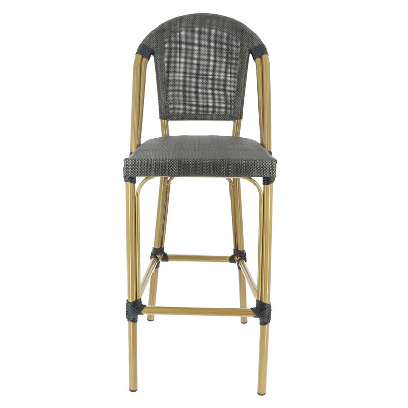 Tabouret de restaurant extérieur en aluminium imitation teck avec tressage en...